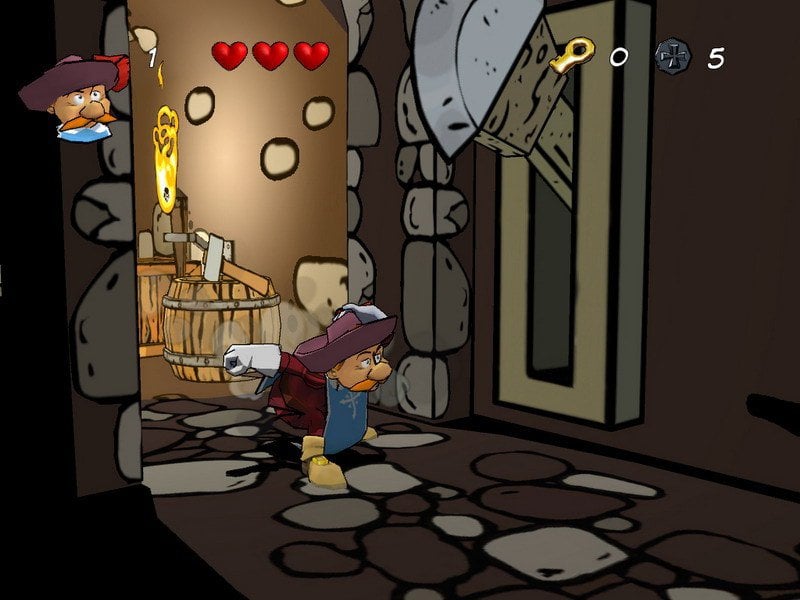 Три мушкетера - аркадная игра, рассказывающая про отважных Атоса, Арамиса и Д’Артаньяна, которым внезапно отвернулась удача. Лишь Портос смог избежать тяжелой участи. Несчастьем героев пользуется подлый граф Ксавье и закрывает героев в темнице. Поскольку три мушкетера оказываются в темнице, Портосу предстоит прийти на помощь своим друзьям.