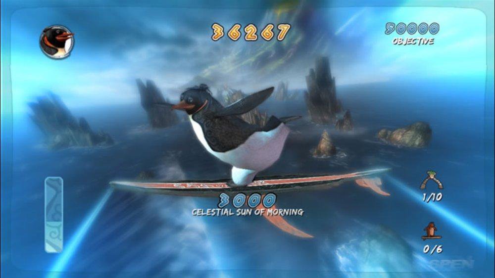 Присутствует выбор из 23 типов досок. Причем их разрешают улучшать. У каждого средства передвижения есть 4 параметра. Они отвечают за умение наращивать скорость, фристайлить, вращаться как можно быстрее и сохранять энергию. Для соревнований доступен 21 уровень. Гонки проходят в Антарктиде, на острове Пингу и бухте, прозванной Камнями Смерти. Для победы нужно проходить через контрольные точки, выполнять трюки и зарабатывать очки. Разбросанные множители помогают увеличить счет. Когда персонаж оказывается "внутри" волны, то включается мини-игра, оформленная в виде QTE. К слову, проект не поддерживает мышь, а при управлении с клавиатуры игра не позволяет сменить раскладку.
