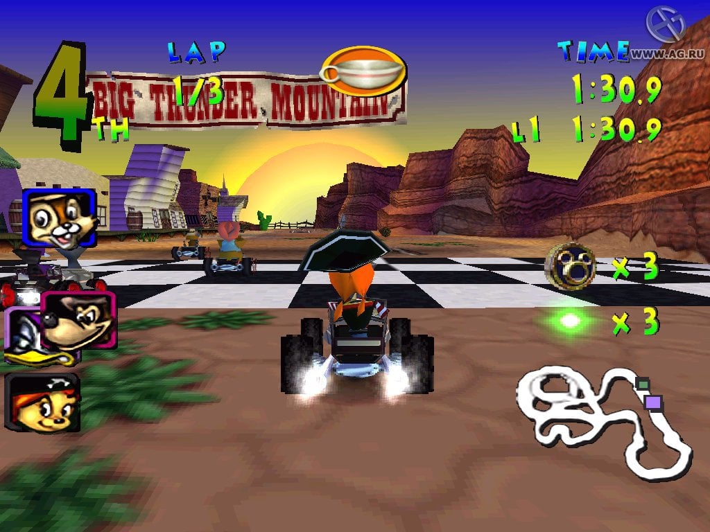 Совершенствуйте свой навык вождения и получайте бонусные очки, которые помогут сделать ваши заезды еще увлекательнее и интереснее. Гонки в Диснейленде предлагают взять под свое крыло 14 персонажей, каждый из которых имеет свои уникальные особенности: Дональд Дак, Аладдин, Чудище с Красавицей, Гуффи и многие другие - выбор по-настоящему огромный. Среди режимов представлены как кольцевые заезды, так и целые чемпионаты, где победитель определяется по сумме баллов. Помимо, присутствуют еще различные челленджи, проверяющие ваш навык езды. На трассах собирайте различные усиления и бонусы. Вы способны замедлить врага посредством выстрела или ловушки. Применяйте хитрость и идите на любые уловки, чтобы стать чемпионом!