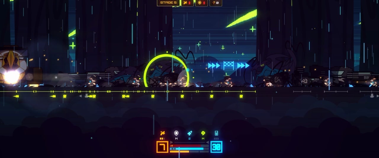 Игра имеет уникальный дизайн и построена на олдскульных платформенных механиках. Главная особенность проекта заключается в необычной и комплексной боевке. В зависимости от ваших навыков и скорости, кампанию можно пройти за час реального времени. Игра объединяет в себе такие жанры, как Hold & Gun и Defense & Rush, комбинируя эти элементы между собой. Доступно несколько уровней сложности, включая хардкор и казуальный режим.
