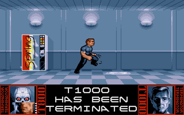 Жизненные силы достигают отметки в 100 единиц. В случае того, когда здоровье доходит до нуля, включается автономная подпитка на 50 единиц. Если же и она дойдет до нуля, то игра будет окончена и наступит Судный день. Главный враг в игре - Т-1000. Он вооружен пистолетом и может менять форму, превращая свои руки в смертоносные предметы. Он преследует на протяжении всей игры, пока в конце не предстоит сразиться с ним в финальной схватке.
