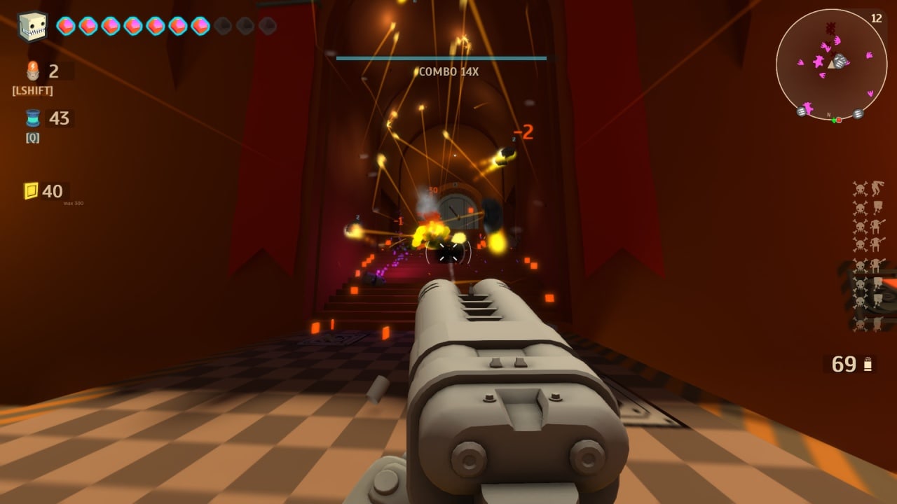 Арсенал оружия включает 10 уникальных стволов. С некоторых врагов выпадают трубы и ящики, в которых содержатся боеприпасы и временные улучшения. Старайтесь сделать все возможное, чтобы продержаться все 30 волн. С каждой минутой игровой процесс ARMORED HEAD становится сложнее и динамичнее.