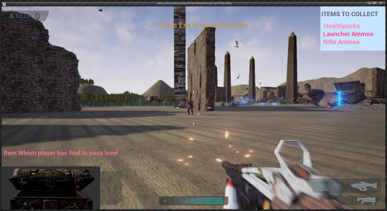 Tales of Destruction - шутер от первого лица, представленный 9 разными картами, каждая из которых представляет собой большой открытый мир с разными биомами. У вас есть 2 вида оружия: лазерная винтовка и лава-гранатомет. Сражайтесь с многочисленными врагами, собирайте улучшение, патроны, аптечки и многое другое. Каждая локация предлагает пройти индивидуальные испытания.