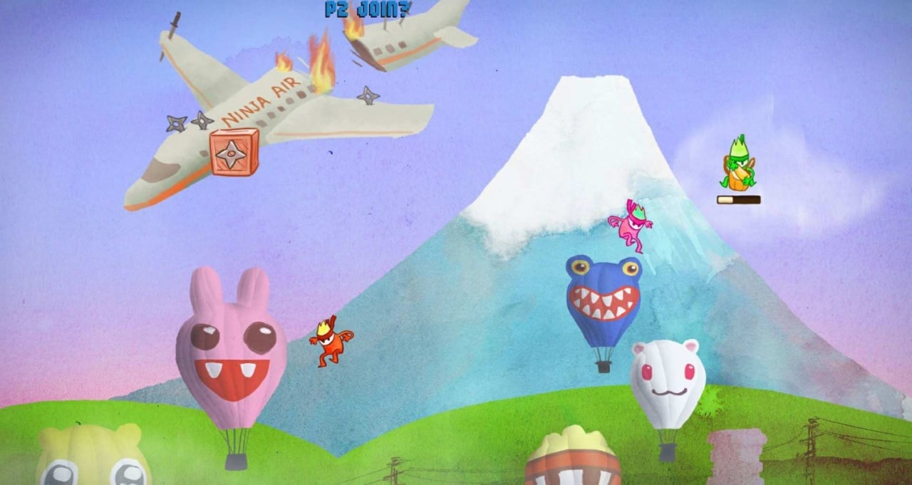 Shuriken Skies - двухмерная аркада, рассчитанная на игру до четырех человек. В начале игры, выбрав себе одного из ярких ниндзя, вы прыгаете из падающего самолета и приземляетесь на землю. Однако есть одно "но". Выпрыгнув из самолета, необходим парашют. А он лишь один на четверых. Что это значит? А то, что предстоит сражаться за него прямо в воздухе! Развлекайтесь!
