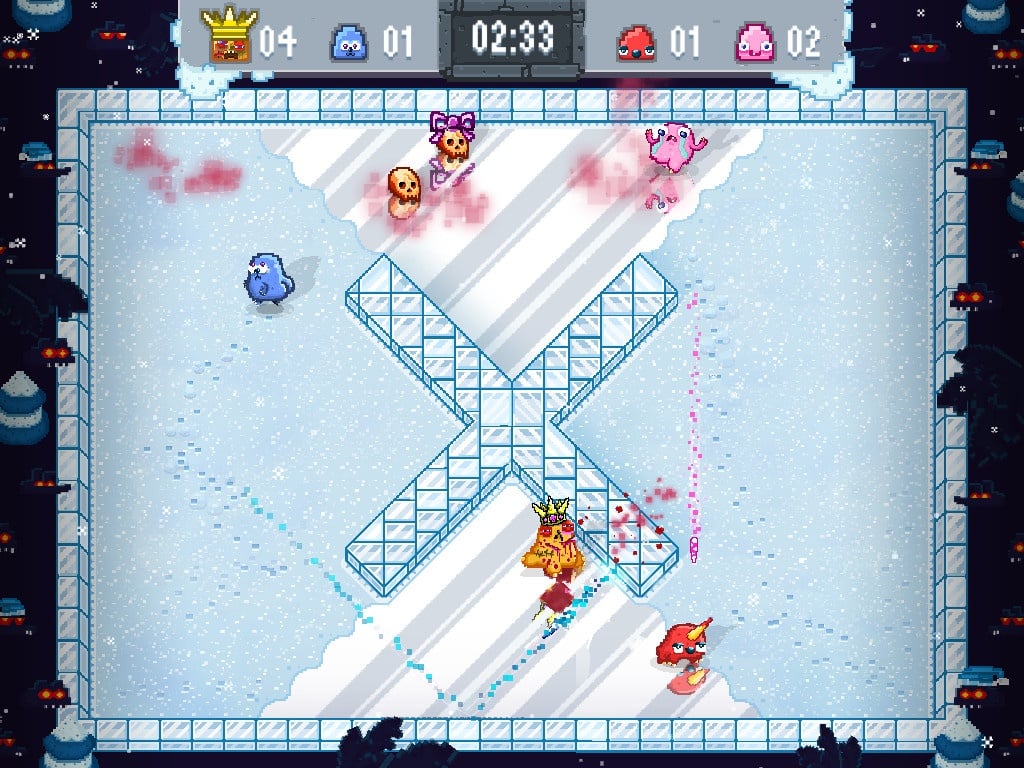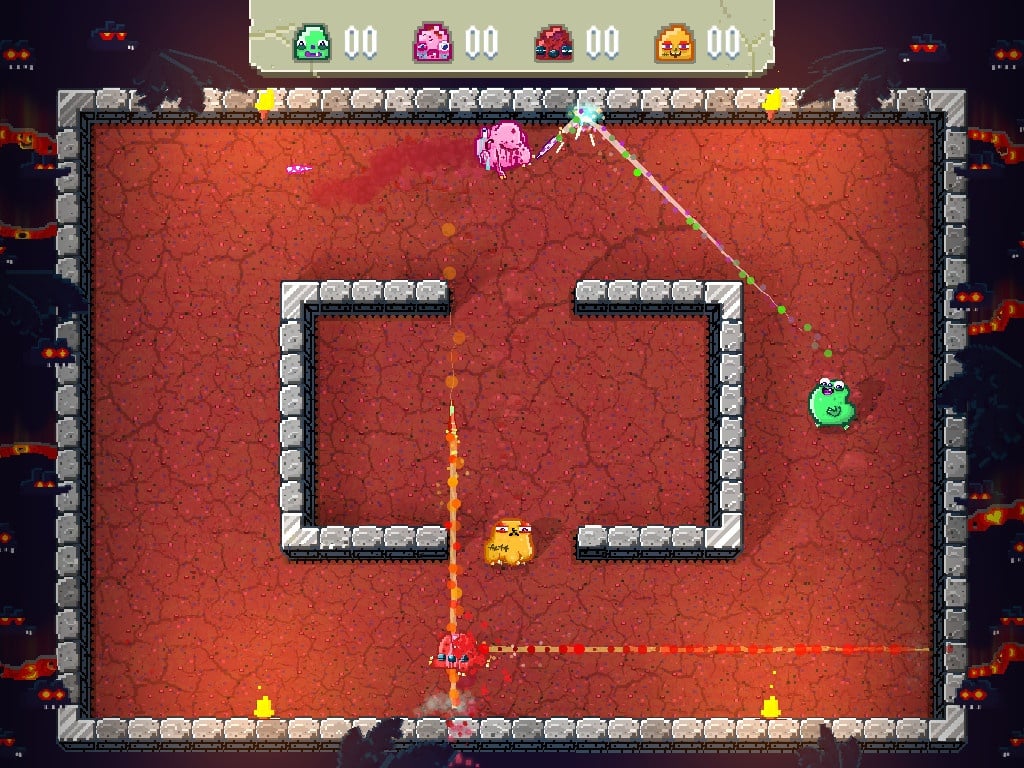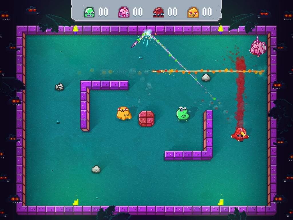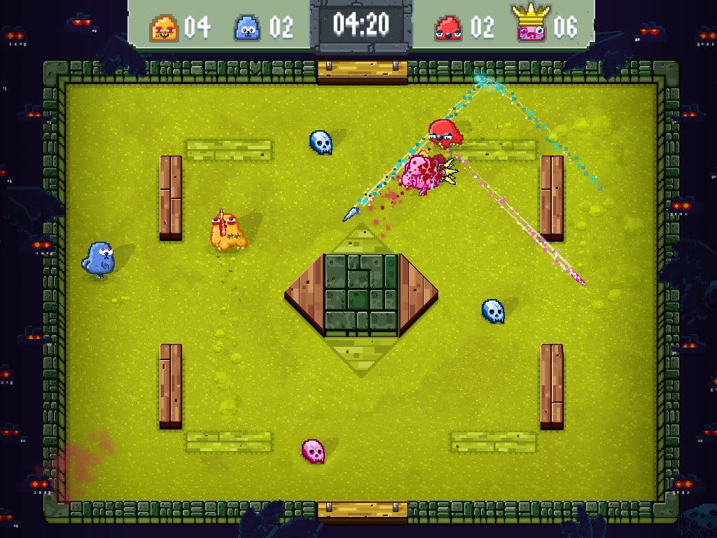 Можно производить лишь один выстрел. Чтобы снова запустить снаряд, вам необходимо подойти к нему и подобрать. Примечательно, что ваше оружие может причинить вред и вам лично, поэтому следует продумывать свои действия. После победы над соперниками, собирайте их черепа в качестве трофеев. Каждый герой владеет индивидуальными способностями и навыками.