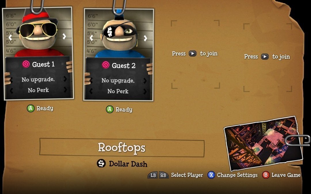 При этом на локациях доступно огромное количество разнообразного оружия, различной защиты, бонусов, усилений и много других вспомогательных средств. Появляются они рандомным образом, что каждый раз ставит игроков в новые и непривычные условия. И это не все особенности данного режима. Каждые несколько минут окружение меняется в режиме реального времени. Например, в определенный момент может исчезнуть мост, появляется охрана и многое другое. Оружия несколько видов. Обычно на картах представлено по 2-3 разных типа вооружения. На украденные деньги можно покупать различные улучшения и прокачивать навыки своего персонажа.
