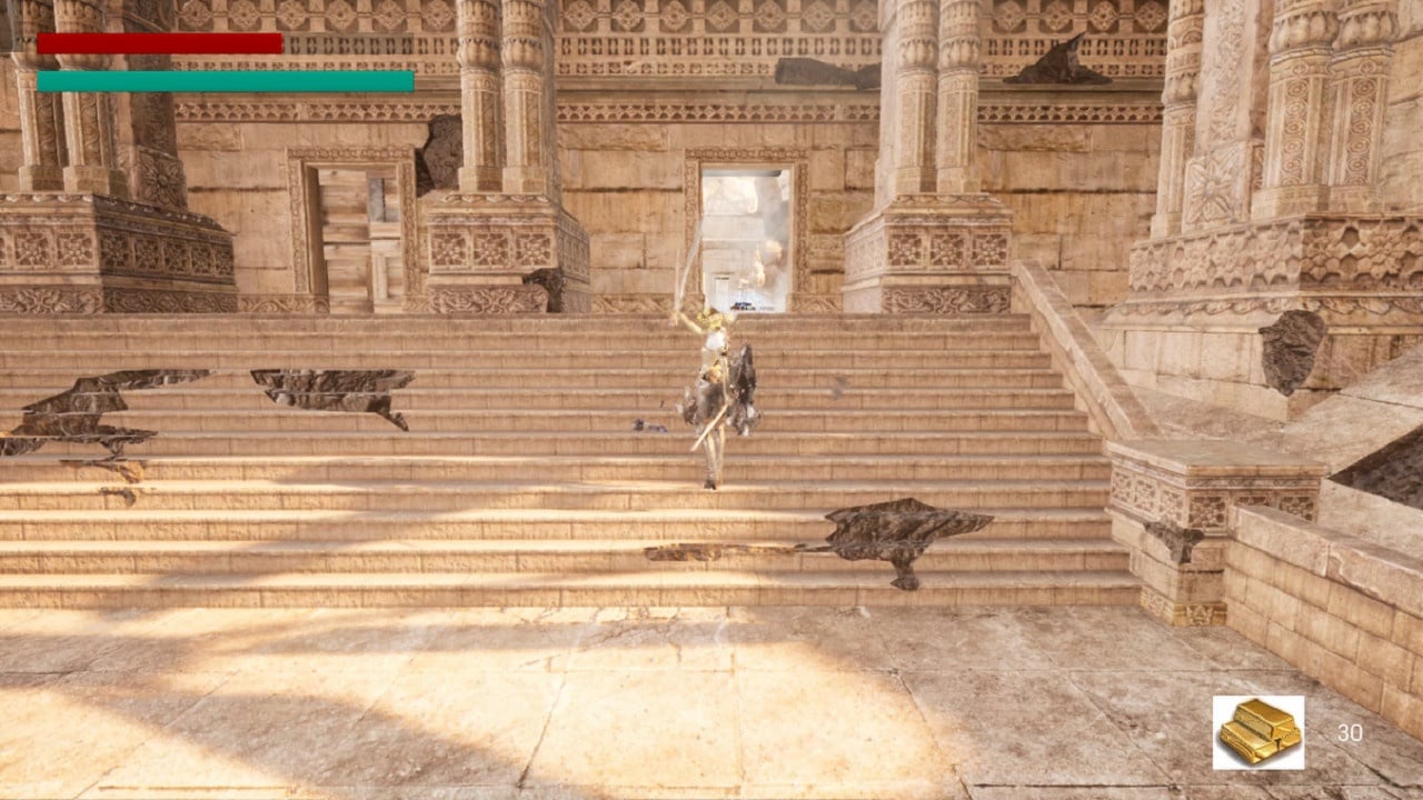Игрок берет управление над центральным персонажем-воином, активирует оружие и мощь подопечной, а после отправляется сражаться с врагами. Предстоит добраться до Храма, заполненного золотом, где нужно набрать наибольшее количество драгоценностей и унести их с собой. Перемещаясь по комнатам Храма, потребуется решать головоломки, участвовать в битвах и собирать золото. Игра заканчивается, как только протагонист добирается до секретной лаборатории.