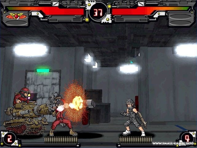 Игровой процесс Metal Gun 3 Shout of the arms отличается невероятной степенью динамики, где позволяется носиться по аренам, палить из пушек во все стороны и пытаться любым способом убить своего оппонента. Особенностью выступает то, что патроны в каждом оружие не бесконечные. В определенный момент они могут закончиться, что вынудит пойти в ближнюю конфронтацию со своим оппонентом. Доступна лишь одна дополнительная обойма, которую можно использовать в любой момент. Перезарядка отведена на отдельную кнопку. Используйте ее с умом! Ростер бойцов насчитывает 11 уникальных персонажей, каждый из которых имеет индивидуальные паттерны движений и атаки. Среди героев доступны робот, мистер Икс, солдат по имени Дзин, киберниндзя, Стиратель и другие яркие персонажи. Каждый герой владеет собственным оружием или умеет трансформироваться. Робот, к примеру, превращается в вертолет, танкист управляет тяжелым БТРом, диверсант имеет лазерный прицел, что позволяет ему производить точные выстрелы, мистер Икс носит с собой пушку на несколько голов выше его и т.д.