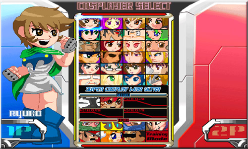 Бэкграунды в игре анимированы и состоят из огромного количества деталей. Доступна сюжетная аркада. Пройдя сюжетную ветку за определенного бойца, откроется небольшая предыстория, рассказывающая про героя. Также после прохождения откроются новые персонажи. В любой момент можно заглянуть в раздел Гид, чтобы изучить навыки бойца. Присутствует несколько режимов, среди которых Normal Mode и Battle Royale. Игровой процесс Super Cosplay War Ultra GENKAITOPPA представляет собой классический файтинг, где между собой сражаются два героя. Доступно несколько видов ударов, захват, блок, возможность провести контратаку и прыжок. Изучайте слабые места своего оппонента и нанесите ему сокрушительную атаку. Играйте как в одиночку, так и сражайтесь вместе с другом в режиме Версус. Выбирайте своего протагониста или воспользуйтесь механикой случайного выбора.