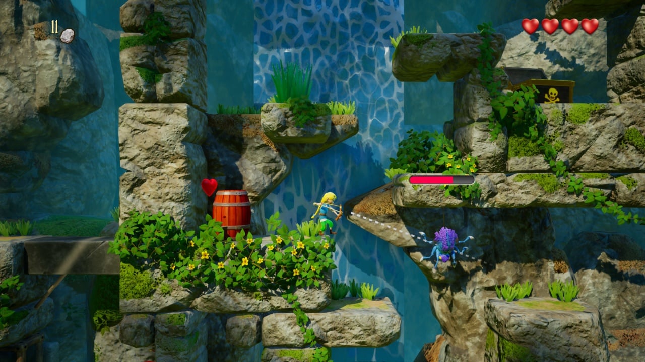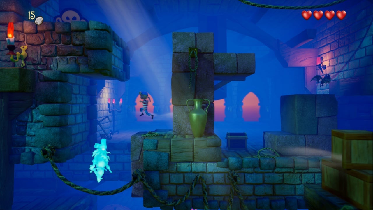 Участвуйте в битвах с пиратами или вымышленными существами, путешествуйте по морю на корабле и успейте добраться до сокровищ до того, как это сделают соперники. В секретных уголках карты разбросаны коллекционные предметы. Вы способны улучшить подопечного, изучив способности "Хрупкий взрыв", "Освещение", "Прыжок по стене" и "Блокировка крюка". Также можно увеличить количество общего здоровья, исследуя локации и находя определенные предметы.