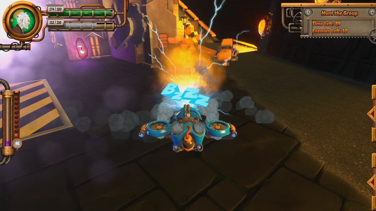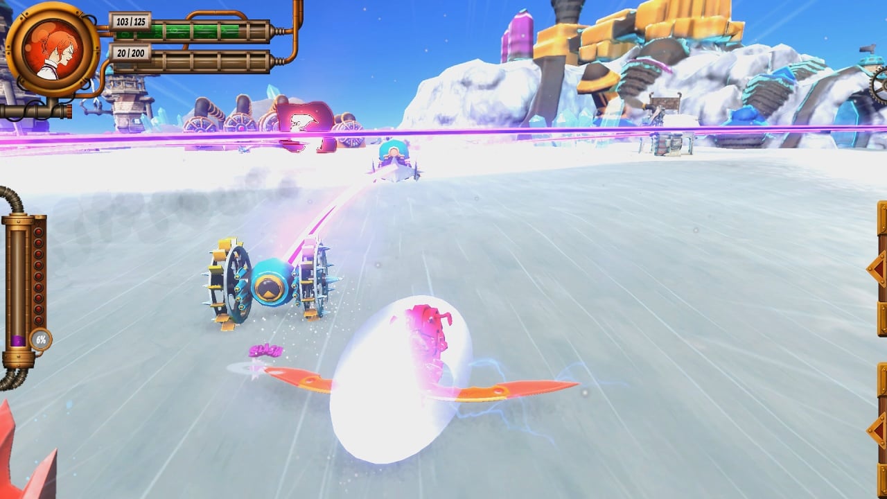 Goggles - World of Vaporia - многопользовательский шутер от третьего лица, позволяющий соревноваться четверым игрокам. Играйте за Квентина, Фрэнка, Теслу или Джернеса. У каждого героя имеется свой тип транспорта, особое оружие и уникальный набор способностей. Игра выполнена в сеттинге стимпанка.