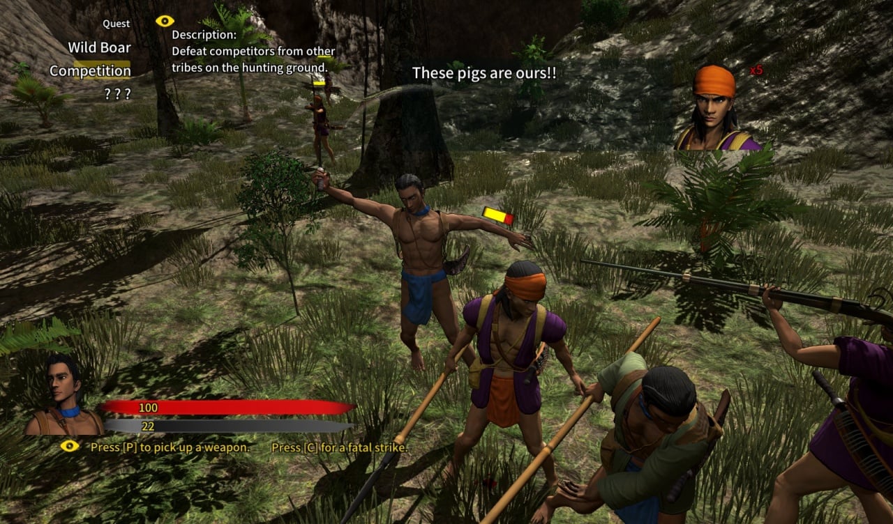 Wo Yao Da - экшен от третьего лица с элементами выживастика. Вы играете за воина племени, путешествующего по миру. Он управляется мачете, копьем, луком и аркебузой. По мере продвижения по сюжету станет доступен еще один персонаж, отличающийся от основного протагониста. Он идеально владеет боевыми навыками.
