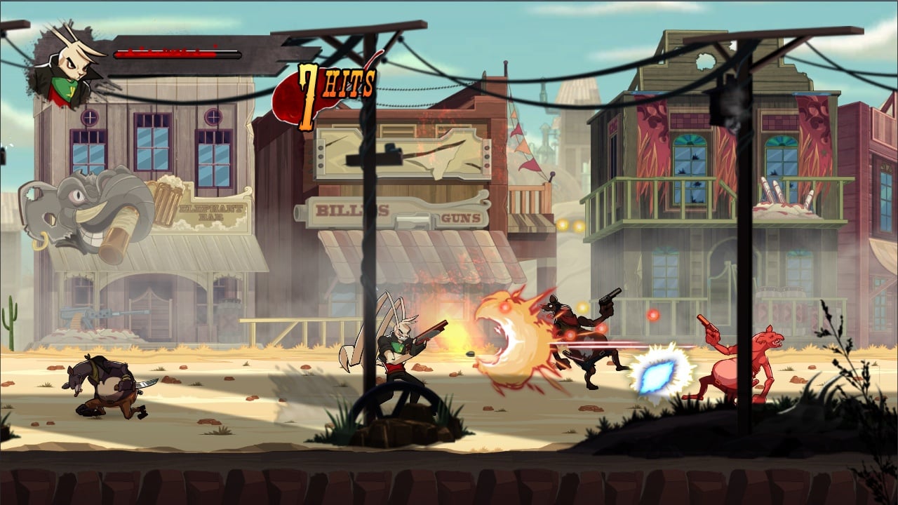 В инди-проекте 10 уровней и 8 битв с главарями. По сюжету бандиты убивают подругу протагониста и уничтожают всё, что ему было дорого. Герой узнает, что это сделали враги его отца, собирает команду и отправляется мстить. Большую часть времени заяц бьет многочисленных противников руками и ногами, а также применяет против них оружие ближнего и дальнего боя. Можно проводить различные удары и увеличивать счетчик комбо. Постепенно воитель прокачивается и изучает новые приёмы. По мере прохождения появляются этапы с платформингом, где надо много прыгать по статичным или движущимся объектам и преодолевать пропасти.