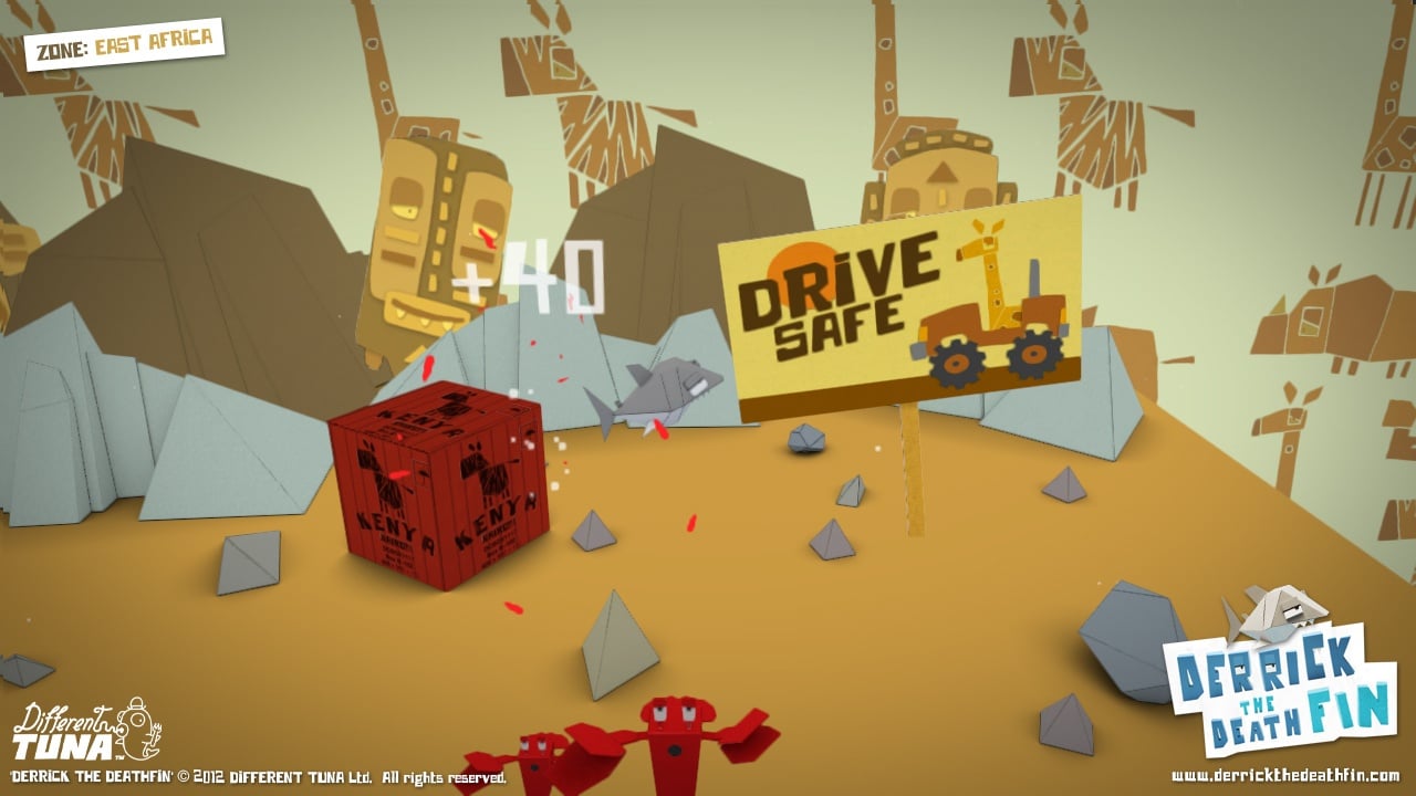 Derrick the Deathfin – это шуточный раннер с видом сбоку. Игра переносит геймеров в подводный мир, сделанный из бумаги и картона. По сюжету у акулы по имени Деррик родители гибнут и становятся рыбьими консервами. Морской хищник пытается отомстить за их смерть, уничтожая всё на своем пути и параллельно борясь против загрязнения окружающей среды людьми.