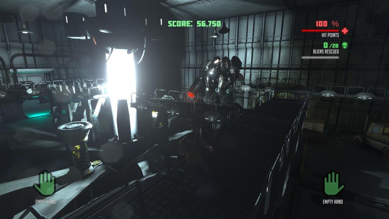 Во время прохождения геймеру необходимо пережить вторжение НЛО в атмосферу планеты Земля, преодолеть охранников Зоны ради выполнения задания энтузиастов, что решили собраться перед оградительным забором закрытой территории ради получения ответов на вопрос об одиночестве людей в галактике. Большую часть времени нужно проводить в стелс-режиме, незаметно вырубая солдат для продвижения дальше по уровням. Некоторые этапы состоят из чистокровного экшена, например, полёт на летающей тарелке с мощным вооружением, позволяющим уничтожать целые постройки за секунду. После спасения зелёных человечков, пользователь получит шанс поиграть в ретро-аркаду, что является отсылкой на множество игровых автоматов с проектами в космической тематике.