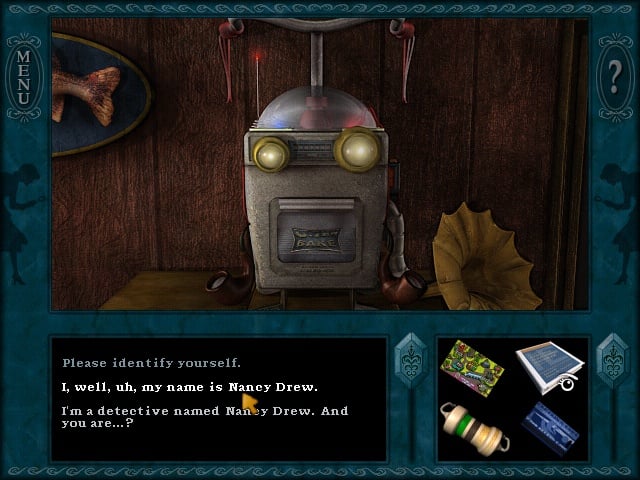 Nancy Drew: The Haunted Carousel - восьмая часть приключенческих квестов про юную сыщицу Нэнси Дрю. Игровой процесс представляет собой поинт-н-клик, в котором вы исследуете разнообразные локации, общаетесь с различными героями и решаете многочисленные головоломки. Экран разделен на три части. В верхней находится основной экран, где вы наблюдаете локацию или персонажа, с которым беседуете. Нижняя - это диалоговое окно, а правая часть отведена под инвентарь. Геймплей Нэнси Дрю: Заколдованная карусель позволяет вращать камеру на 360 градусов. Курсор мыши - это лупа, которая меняет цвет, когда вы натыкаетесь на квестовый предмет. Перед началом игры можно выбрать уровень сложности. На высоком уровне отсутствуют подсказки. Дрю записывает найденные улики и заметки в свой ноутбук.