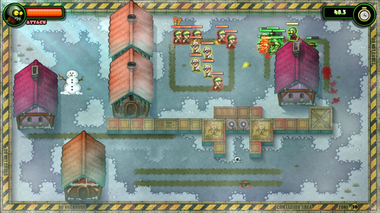 Это аркадная головоломка с элементами стелса. Игрок наблюдает за происходящим сверху и контролирует своих зомби в реальном времени. Чтобы пройти этап, надо перекусать всех людей на экране. В зависимости от своего типа представители человечества ведут себя по-разному: один сразу же быстро убегает, другой открывает огонь на поражение и т. п. Вооруженные солдаты патрулируют окрестности. Чтобы успешно атаковать их, надо прятаться от противников, выжидая удобный момент и устраивая засады. Иногда бойцы собираются в группы, и тогда приходится тайно собирать орду, а затем пытаться задавить врагов числом.
