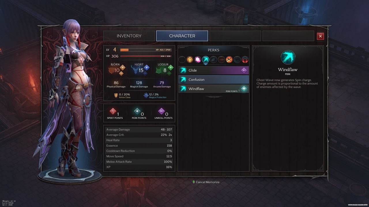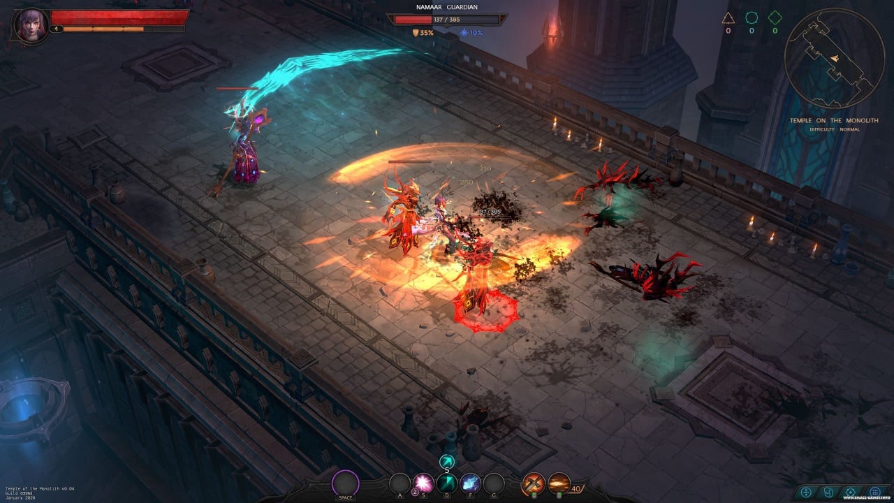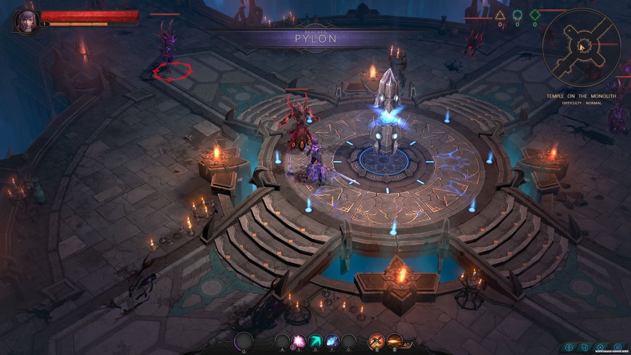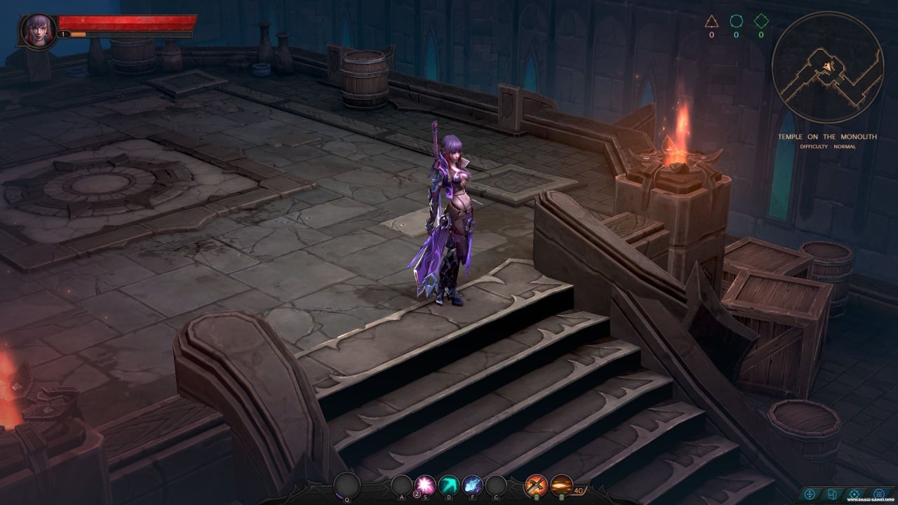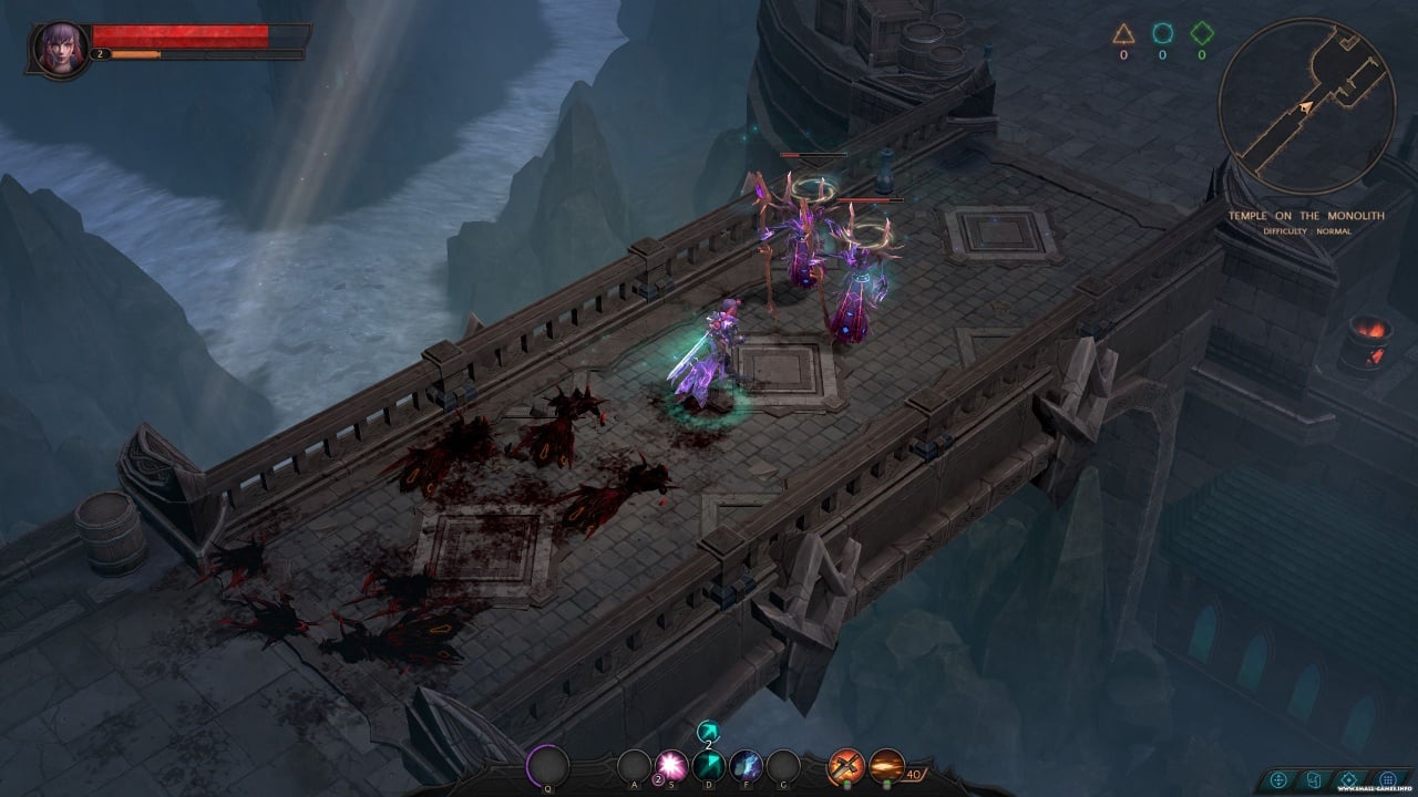 В инди-игре отсутствует понятие маны. Умения просто перезаряжаются некоторое время после применения. Сюжета как такового нет. Героиня просто оказывается в древнем храме и начинает уничтожать демонов. Геймплей напоминает третью "Дьяблу". Прокачка тоже вдохновлена D3: при повышении уровня характеристики сами увеличиваются, а также открываются руны для умений, что добавляют им дополнительные свойства. Продукт так и не был закончен. Создатель официально отменил проект и прекратил разработку. Поэтому тайтл находится в очень сыром состоянии.