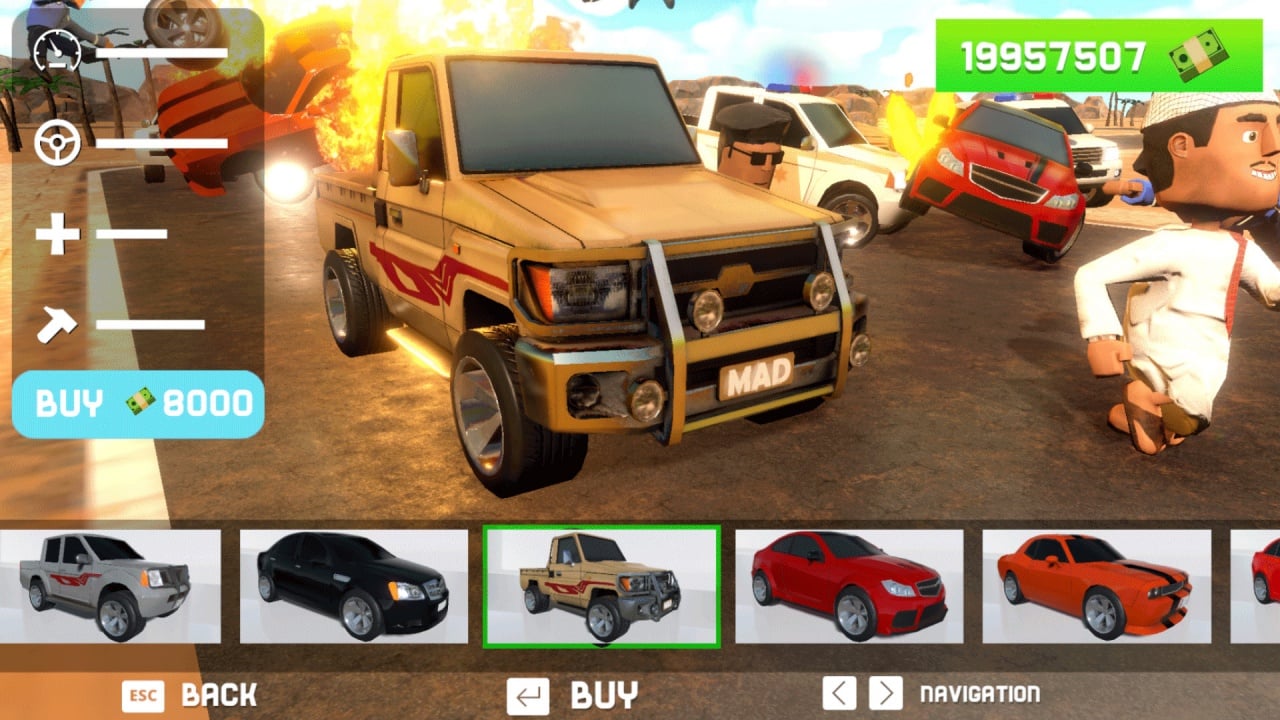 Особенностью геймплея выступает возможность выйти из машины и убегать от полицейских от третьего лица. Патрульные копы станут гнаться за вами, спотыкаться и всячески поймать. Игровой процесс представляет собой настоящую комедию и абсурд, который способен изрядно развлечь и повеселить. Игра черпает вдохновения в классической игре Driver, однако доводит механики до полного безумия. Сыграйте за араба-нелегала, хитрого еврея и даже Бэтмена! Автопарк включает огромное количество разнообразного транспорта, начиная от легковых автомобилей и спорткаров, заканчивая грузовиками и винтажными авто. Настоящее безумие, которое способно скрасить ваш вечер!