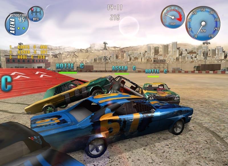 Соревнуйтесь как в одиночной игре, так и в режиме мультиплеера. Demolition Champions представлен режимом карьеры, быстрыми заездами и многопользовательскими гонками, в которых может принимать участие до 16 игроков. Главная задача состоит в том, чтобы всячески повредить автомобиль противника и сделать все возможное, чтобы заставить его выбыть из гонки. Таранте соперника. подрезайте оппонентов на поворотах, а при самом удачном раскладе сделайте так, чтобы вывести его транспорт из строя.
