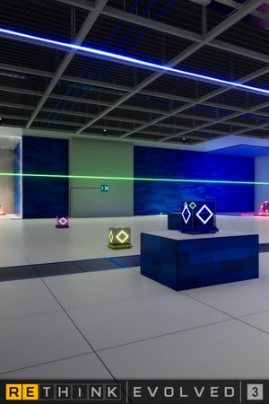 ReThink Evolved 4 состоит из 40 новых пазлов. Они решаются с помощью кубов. Юзер ходит по комнатам, перемещает блоки и расставляет их так, чтобы менять направление лазеров или их цвет. В продолжении появились дополнительные квадраты. Один из них работает в качестве телепорта, но только в паре со своим двойником. Их нужно расставить в разных помещениях, чтобы луч света мог попасть из одного зала в другой. Второй предмет объединяет пару оттенков в другой. Например: если направить на него синий и зеленый, то он выдаст красный.