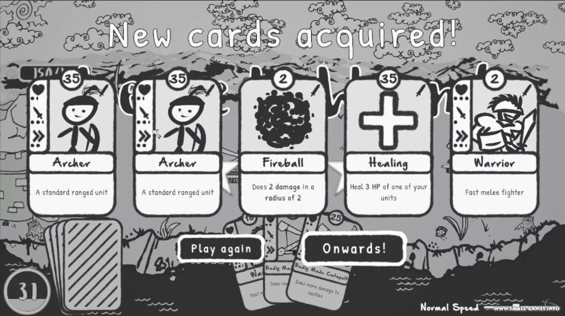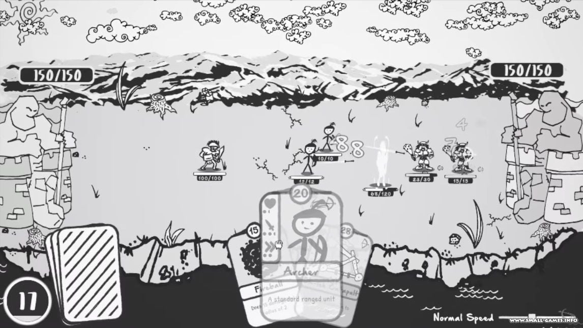 Концепция здесь следующая. Есть 2 крепости с определенным запасом прочности. Юзер защищает свою цитадель и пытается уничтожить вражеское укрепление. Противник занимается тем же самым. Все манипуляции в Nethercard Kingdom проводятся с помощью колоды. Карты позволяют создать определенный тип войска, наложить баф или применить атакующее заклинание. На их использование тратятся специальные очки, что накапливаются сами собой постепенно.