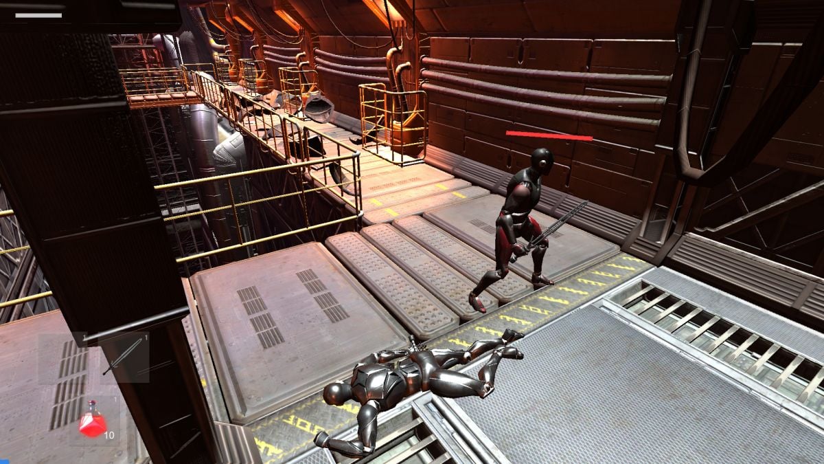 Сюжетная кампания, разделённая на множество уровней, происходит на территории заброшенной фабрики по производству роботов с встроенным искусственным интеллектом. В её помещениях остались всевозможные андроиды, что агрессивно настроены по отношению к виртуальному протеже. Сражаться с ними предстоит с помощью одноручного меча с невероятно острым лезвием, что наносит серьёзный урон при прямом попадании. Геймер может комбинировать разные типы ударов для создания комбо, что увеличат эффективность истребления противников. Обыскивая локации, пользователь находит полезные предметы и зелья, что усиливают протагониста, что отправился в путешествие на завод ради того, чтобы вернуть содержимое секретного сундука громадных размеров, и как можно скорее покинуть эту местность.