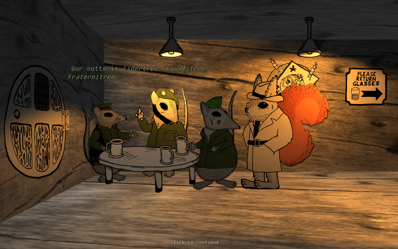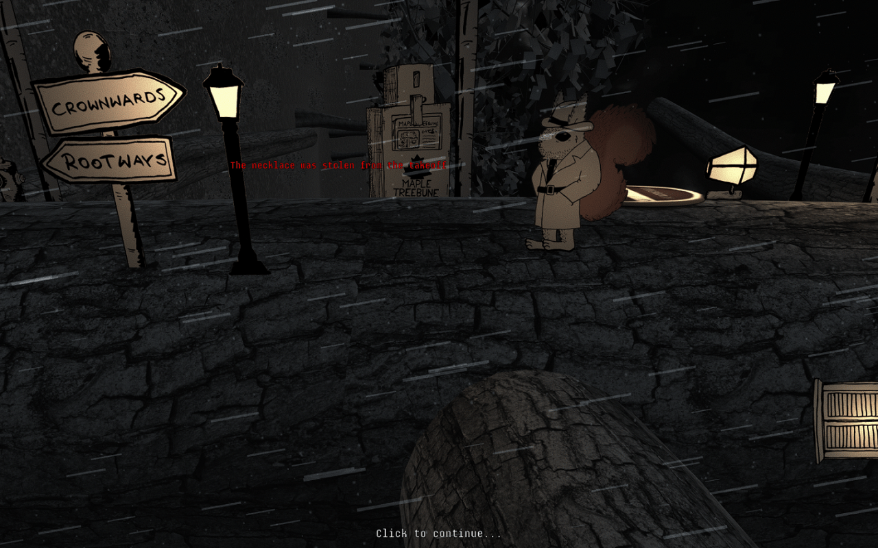 Протагонист – белка, что работает журналистом, и находиться в поисках занятных случаев для проведения расследования. Он узнаёт, что существует некая тайна под названием “Большой Клён”. Это единственная информация, которая имеется в распоряжении виртуального протеже. В ходе общения с персонажами, что участвуют в развитии сюжетной линии, игрок получает новые сведения и зацепки, что позволяют предпринимать следующие шаги в раскрытии дела. Проект наполнен всевозможными событиями, что происходят во время путешествия главного героя. Помимо решения головоломок разной степени сложности, геймер проводит много времени в диалогах с запоминающимися персонажами, что обладают собственными характерами. Локации представляют собой небольшие территории, что вмещаются в один экран монитора. Присутствуют лесные массивы, жилища героя и других персонажей, конторы, магазины и многое другое.