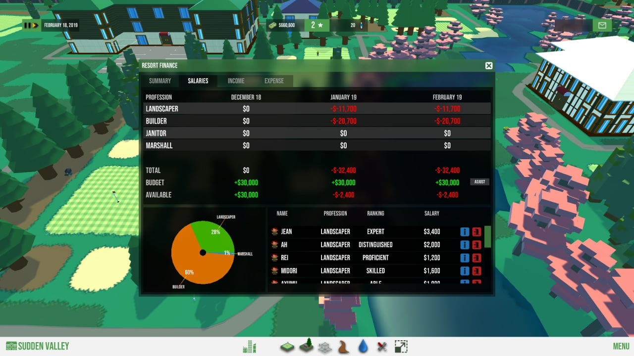Resort Boss: Golf - строительный симулятор, в котором вам предстоит заняться постройкой собственного корта для гольфа, в последствии превратив его в самый настоящий пятизвездочный гольф-клуб. Украсьте ландшафт фервеями, деревьями, соснами, озерами и т.д. Нанимайте персонал, приглашайте гостей на свою площадку и устраивайте турниры, чтобы привлекать внимание спортсменов со всего света.