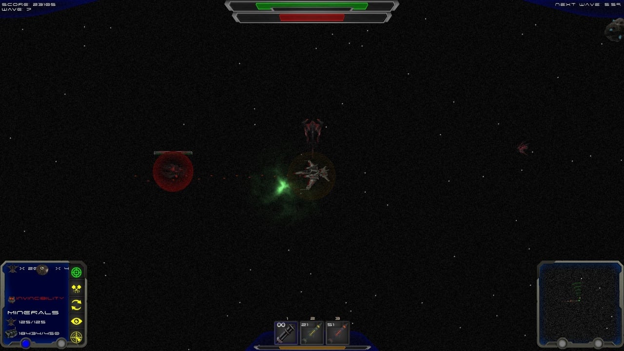 Корабль протагониста оснащён мощным вооружением, которое способно справиться с любым противником при правильном использовании лазерных пушек. Геймеру доступен функционал, позволяющий улучшать истребитель и собственную базу за счёт полезных минералов, что нужно собирать на близлежащих локациях. Местная валюта хранится внутри астероидов, что располагаются в достаточных количествах поблизости. Во время рейдов за минерами, могут повстречаться патрули недругов, что попытаются помешать процессу добычи минералов.