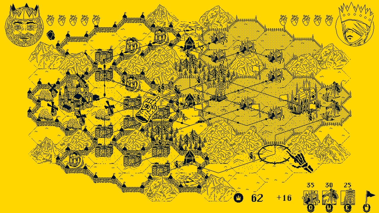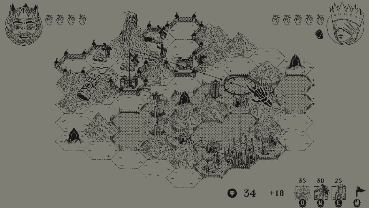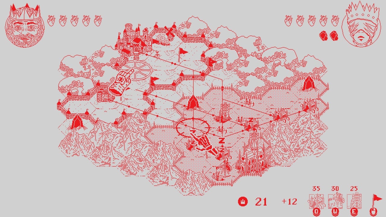 Death Crown представляет собой стратегию в реальном времени с необычной концепцией. Игра использует однобитную черно-белую графику и вид сверху. Все карты состоят из шестиугольников. Есть одиночная кампания и возможность играть вдвоем с одного ПК. Доступен кооперативный режим и PvP. Другому пользователю потребуется геймпад.