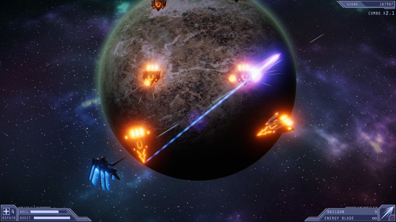 Садитесь в кабину боевого робота, отправившись на просторы открытого космоса, чтобы противостоять инопланетным мехам и кораблям. Вас ждет 9 уникальных уровней, насыщенных напряженным экшеном. Помимо рядовых противников, по окончанию каждой главы ожидает напряженная битва с боссом. Главари представляют собой огромных роботов, каждый из которых имеет свои особенности и индивидуальные паттерны атак.