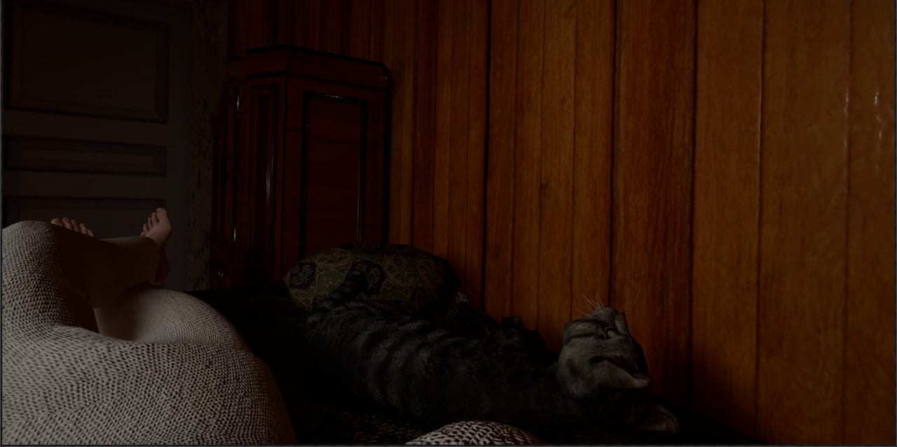 Несмотря на полное отсутствие препятствий, врагов и игрового процесса как такового, герой способен умереть. У проекта есть логическое завершение. В финале даже полноценную заставку показывают. Можно выбрать другое помещение с иными декорациями. Там ленивый протагонист уже бездельничает в обнимку с любимой девушкой и полосатым котом. Это весь представленный контент, не считая спрятанных разработчиком пасхалок.