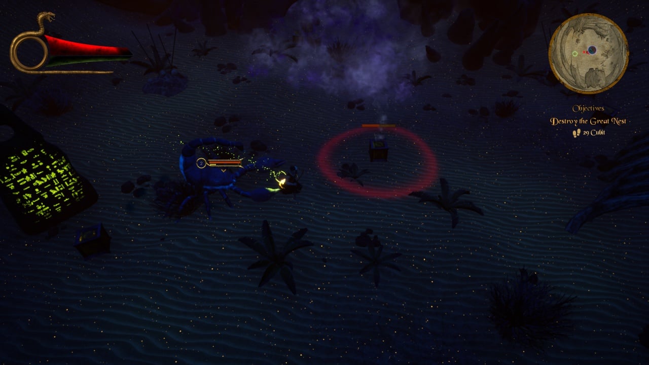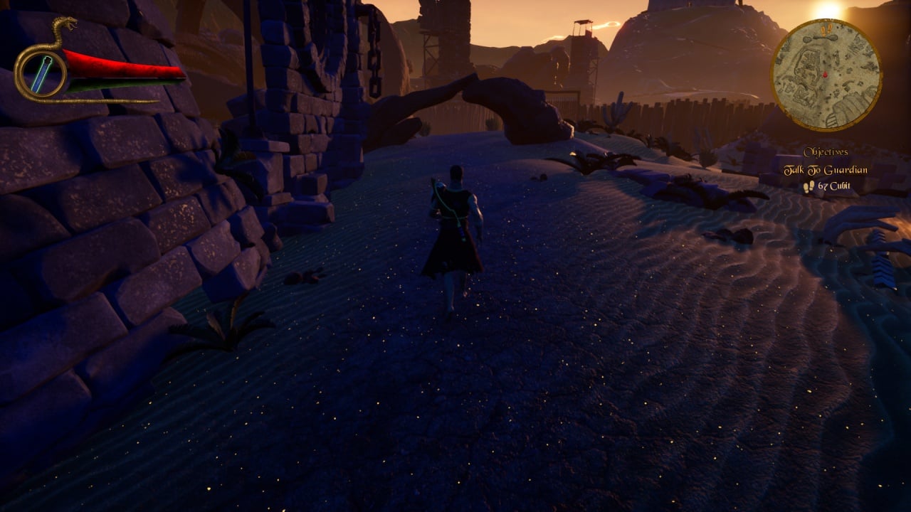 Наемный солдат большую часть времени сражается с гигантскими скорпионами и другими существами, занимается паркуром, взаимодействует с рычагами. Иногда он находит сундуки с лутом и общается с NPC. Бои проходят в реальном времени. Можно ломать обычные или взрывоопасные ящики, чтобы находить золото или наносить противникам дополнительные повреждения. В игре несколько ракурсов камеры. За сражениями пользователь наблюдает сверху, за демонстрацией акробатических навыков – сбоку, за поездкой на маунте – со спины своего протеже.