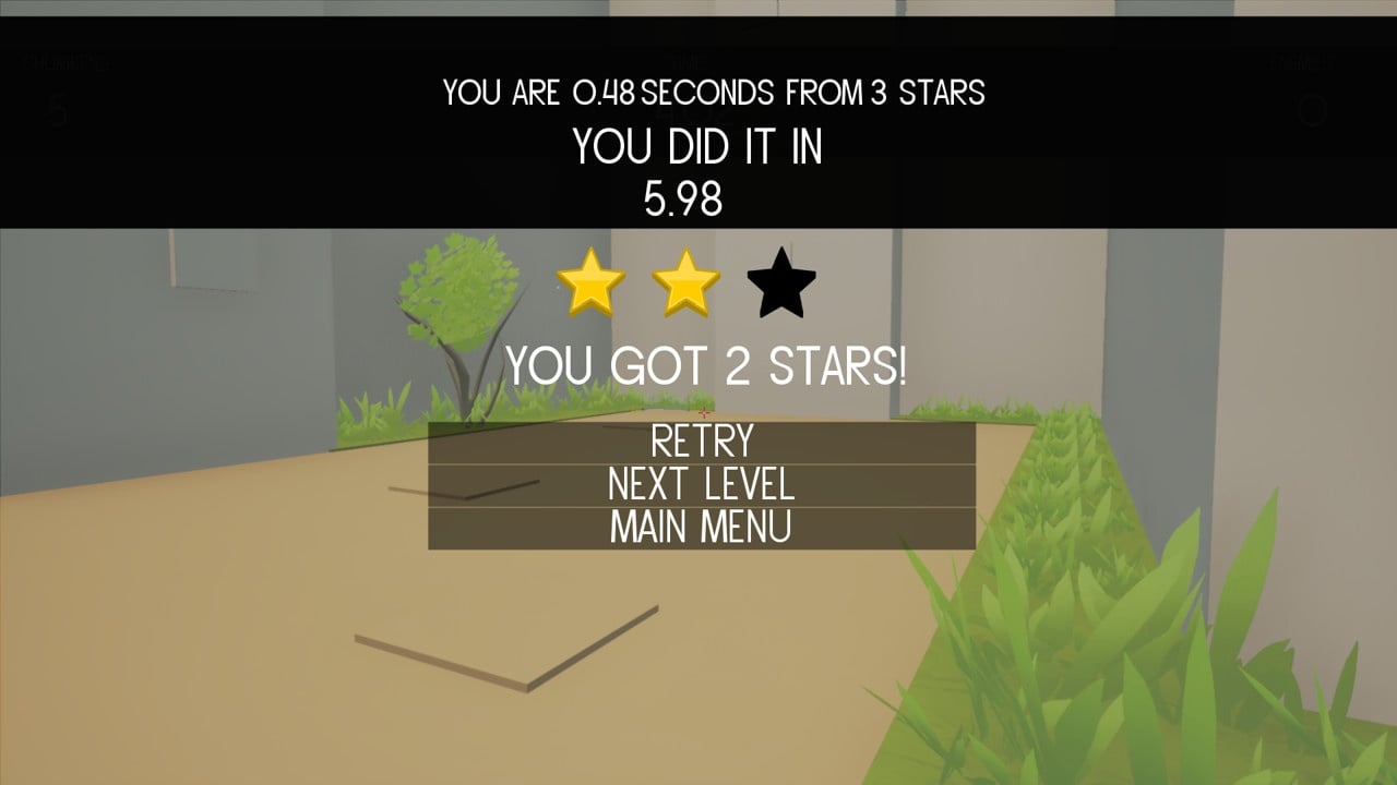 10 Second Shuriken – экшен-платформер от первого лица с шутерными механиками. Игра обладает высокой динамичностью из-за громадной скорости главного героя, что постоянно разгоняется всё быстрее. Прохождение уровней завязано на уменьшении времени, затрачиваемого на дистанцию до финишной черты. Предельное количество секунд, выделяемых игрой – 10. Разработчики создали однопользовательскую кампанию, в которую входит 40 уровней. Для идеального пробега необходимо перепройти каждый этап по несколько десятков раз. Наилучший результат попадает в таблицу лидеров для онлайн-сравнения между всеми игроками.