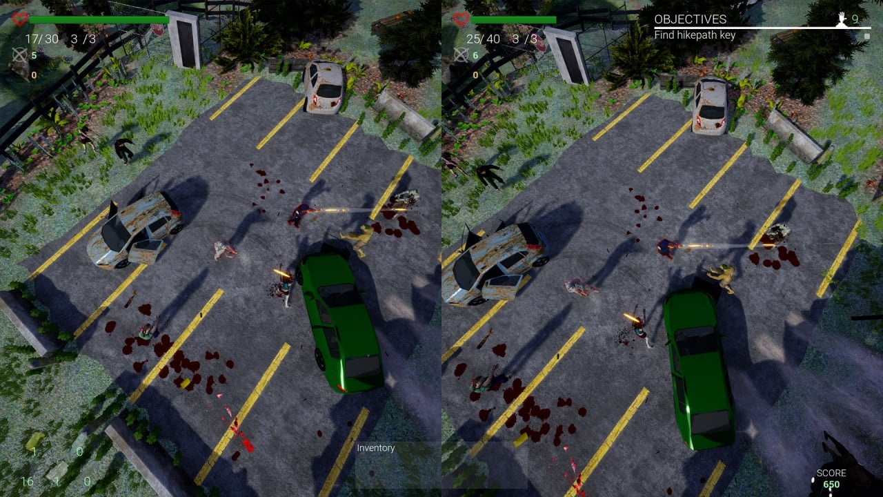 На выбор доступно восемь персонажей, каждый из которых имеет свои особенности. Персонажи C.Q.C. - Close Quarters Combat используют шесть видов стволов. Их можно улучшать после каждого выполненного задания. Совместная игра состоит из шести миссий, где вам необходимо выполнить определенную цель, уничтожить всех зомби и сразиться с боссом.