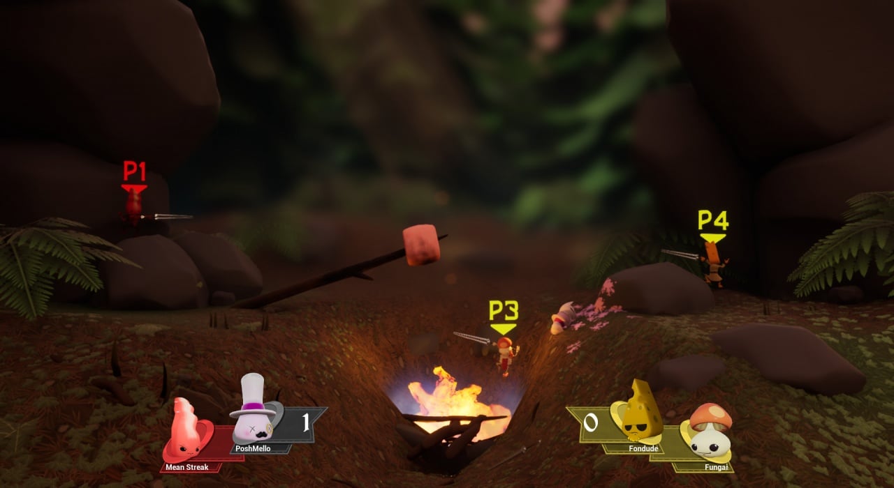 Станьте доминатором барбекю! Геймплей тесно связан с кулинарной тематикой, привнося в игру долю абсурда и черного юмора. Нанести сопернику удар оружием или подходите творчески к вопросу. Например, бросьте шкуру банана, чтобы соперники потеряли равновесие, разлейте масло и подожгите врагов. Каждая тематическая локация предлагает уникальные механики и различные виды челленджа.