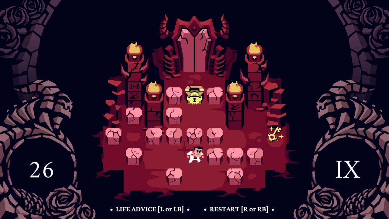 Преодолев все препятствия, протагонист знакомится с одной из девушек-демонов. Во время общения с ними дают выбирать реплики. Неправильный ответ повлечет за собой смерть главного персонажа, а также необходимость начинать весь уровень заново. Если женщине понравится беседа, то она присоединится к гарему. Тогда цикл повторится: герой снова будет пробираться через загадки к следующей даме. Всего их десять: Малина, Асмодей, Цербер, Азазель, Пандемоника, Здрада, Люцифер, Юстиция, Джаджмент, Вельзевул. Барышни кардинально различаются между собой внешним видом, характерами, профессиями и предпочтениями. Игра позволяет вызывать подсказки и пропускать моменты с пазлами. Это короткий инди-проект, в котором контента всего на пару часов. Но у него есть реиграбельность за счет возможности пройти каждое поле разными способами.