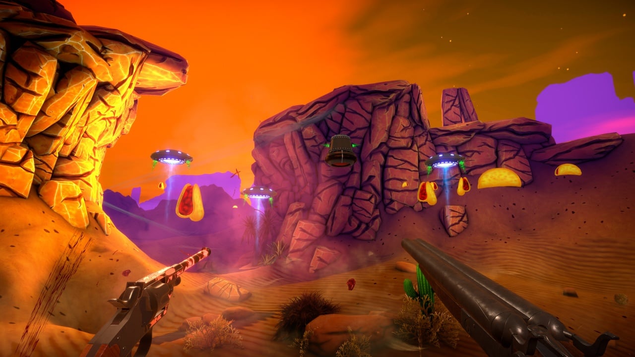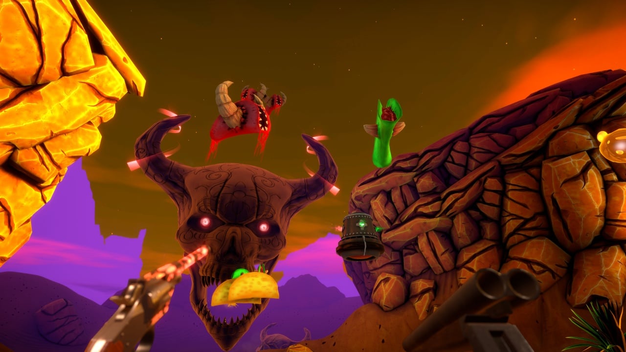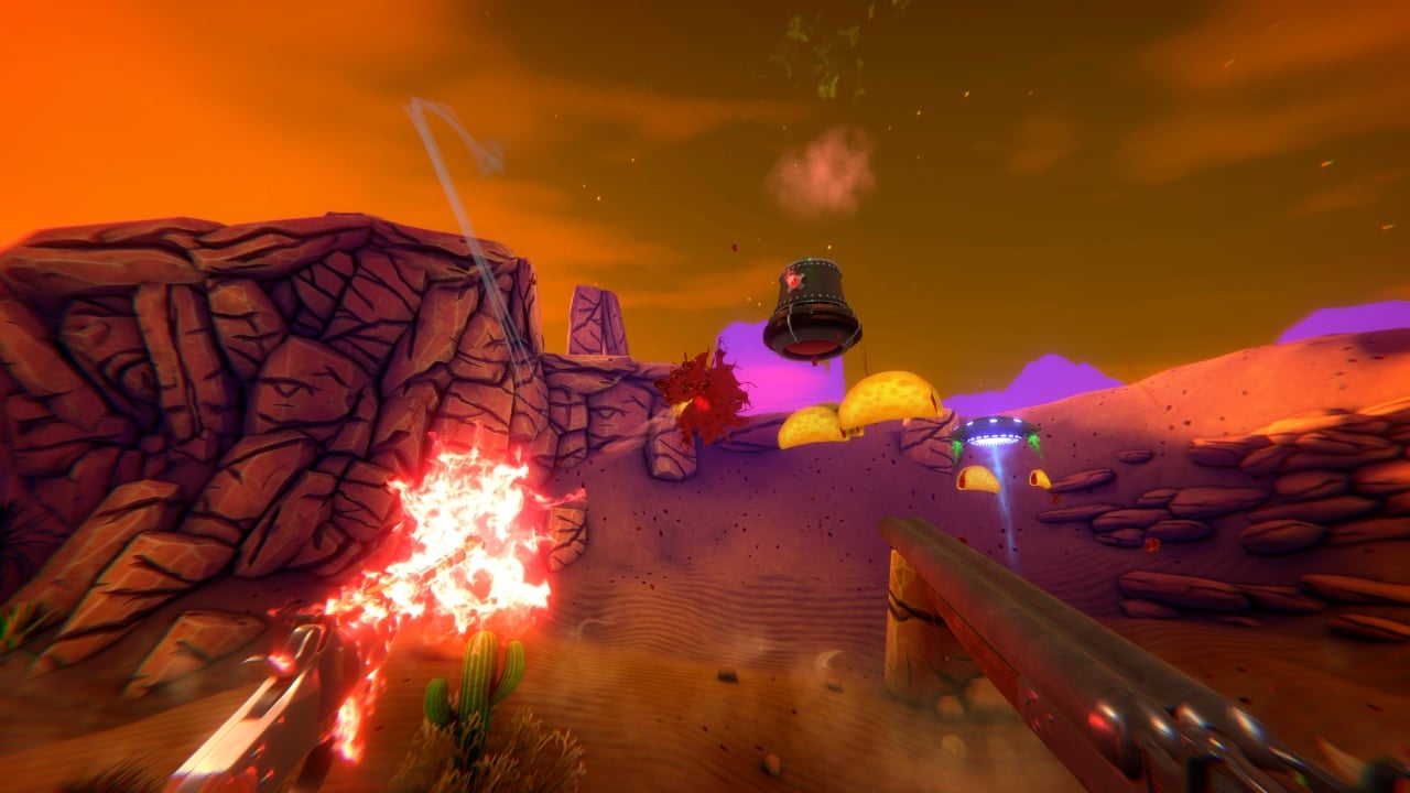 Игровой процесс El Taco Diablo представляет собой шутер от первого лица на боевых аренах, где в основе геймлея лежат точность стрельбы, скорость и реакция. Доступна таблица лидеров, отслеживающая ваши личные рекорды, сравнивая их другими игроками по всему миру. Убивайте бесконечные волны демонов, тако, НЛО и множество других существ. Всего представлено восемь типов монстров, отличающихся способностями. Стреляйте из двух рук и уворачивайтесь от атак врагов. Прежде, чем вступить в равносильный бой, необходима практика. Будьте готовы к многочисленным смертям.