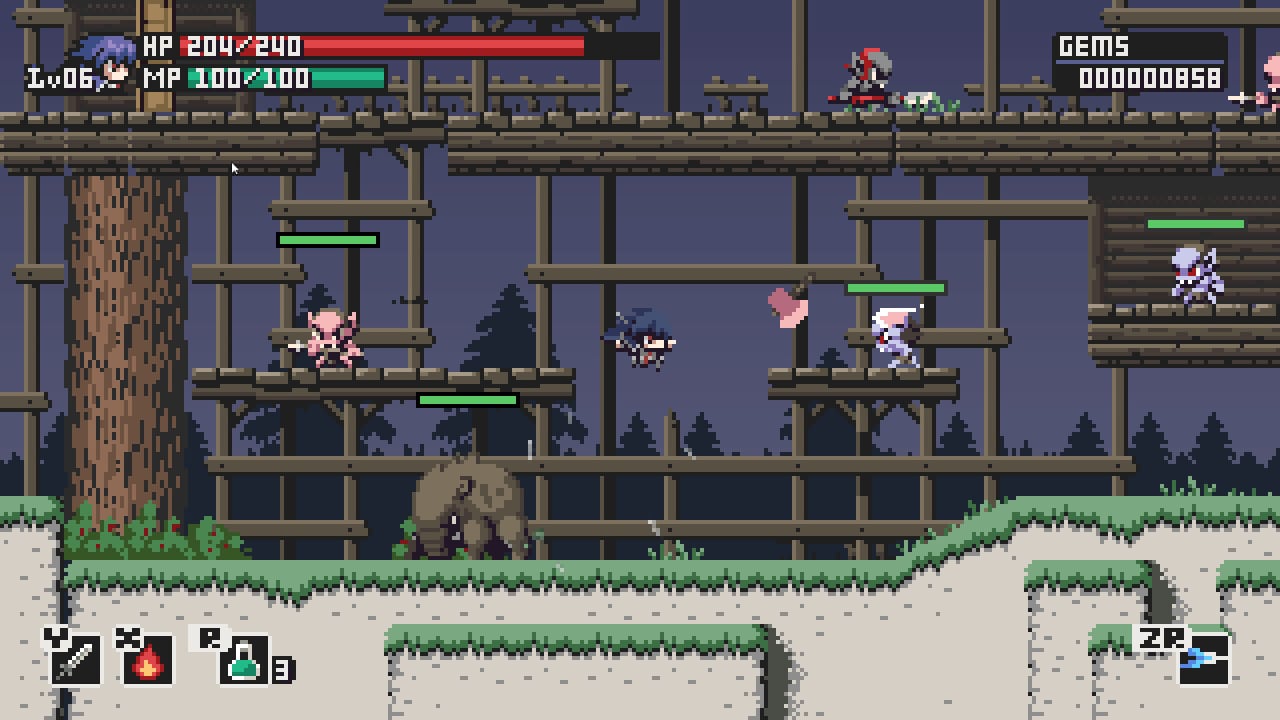 Steel Sword Story – двухмерное приключение с громадным количеством экшена и камерой сбоку, выполненное в духе классический проектов прошлого века, что явно придётся по вкусу любителям этого жанра. Пиксельная графика, использованная разработчиками из инди-коллектива под названием "8bits fanatics", также сильно напоминает о хардкорной классике, что и популяризировала игровую индустрию в те далёкие годы. Сеттингом "История Стального Меча" стало тёмное фентези, популярное в 21 веке. Вселенная наполнена магическими силами, воины сражаются при помощи холодного, а не огнестрельного оружия, протагонист обладает полоской маны, находящейся под показателем здоровья. Враги также имеют шкалу HP над головой для отображения их состояния. Местная валюта, используемая для торговли с неигровыми персонажами, называются драгоценные камни (gems).