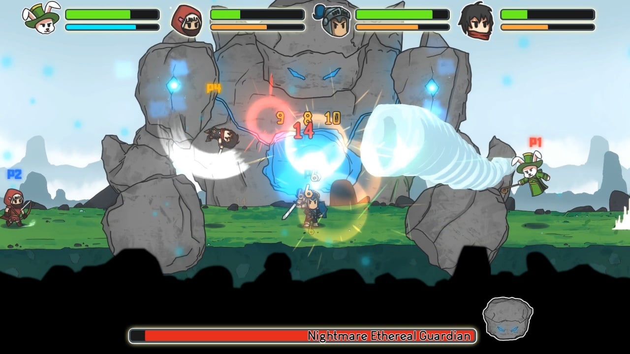 Towertale концентрирует весь свой геймплей на битвах с главарями. Кроме босс-раша в этой игре, по сути, ничего другого нет. Инди-проект состоит из 11 уровней. Каждый босс уникален. Есть смерть с косой, гигантский человекоподобный гриб, минотавр, песчаный червь, колдун, самурай, слизень, каменный голем и другие. У всех злодеев несколько фаз и паттернов атак. Драться с ними можно в компании 2-4 друзей. Товарищам понадобятся геймпады, потому что мультиплеер здесь только локальный.