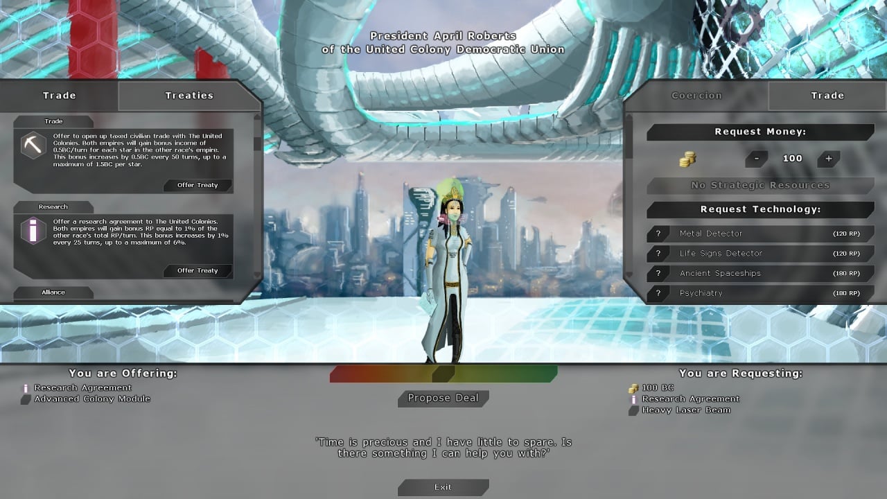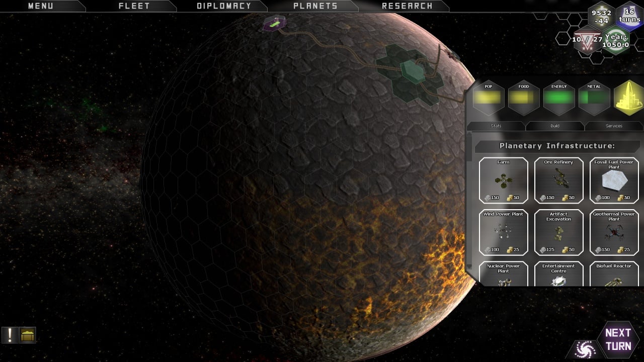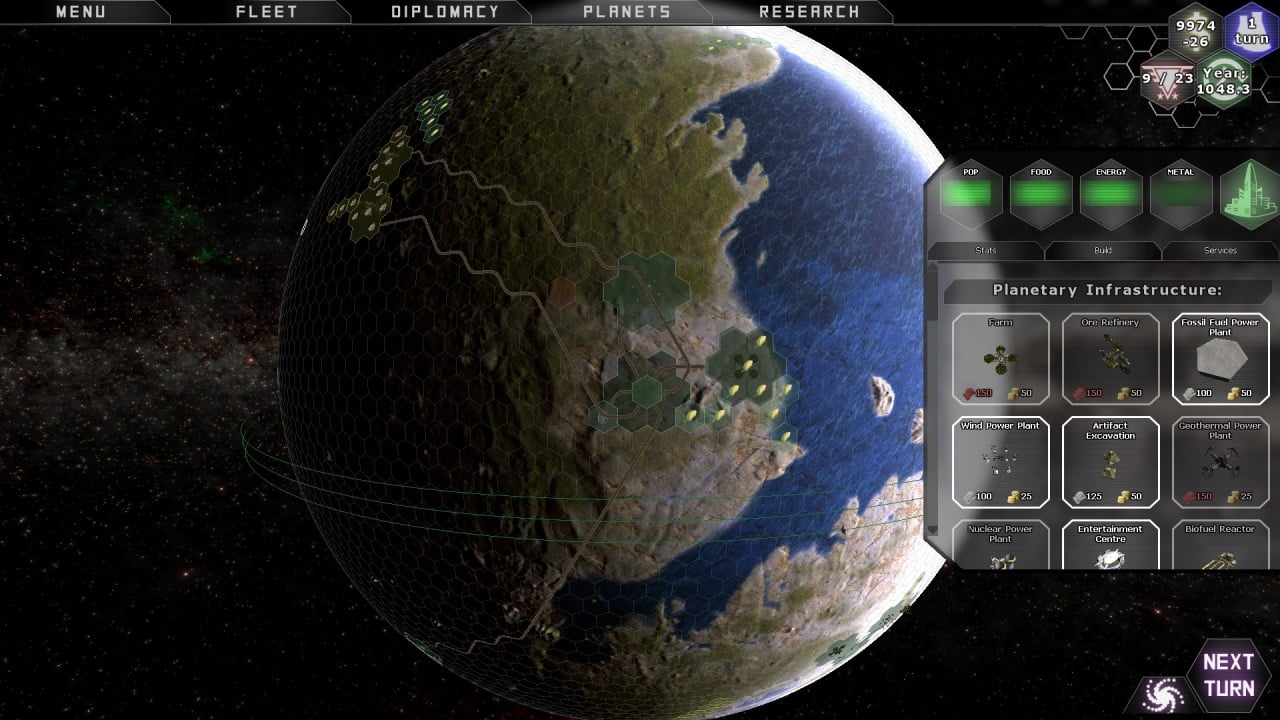 Вселенная представлена разнообразными планетами. Галактика и все объекты генерируются случайным образом. Карта разбита на гексы. На них выстраиваются различные сооружения и города. На одной планете можно возвести до четырех мегаполисов. Любой город состоит из шести видов построек: шахты, фермы, станции, археологические раскопки и т.д. Играбельные расы состоят фракций людей, рептилоидов, разумных акулы и котов. Каждая фракция имеет уникальные характеристики и особенности, влияющие на игровой процесс.