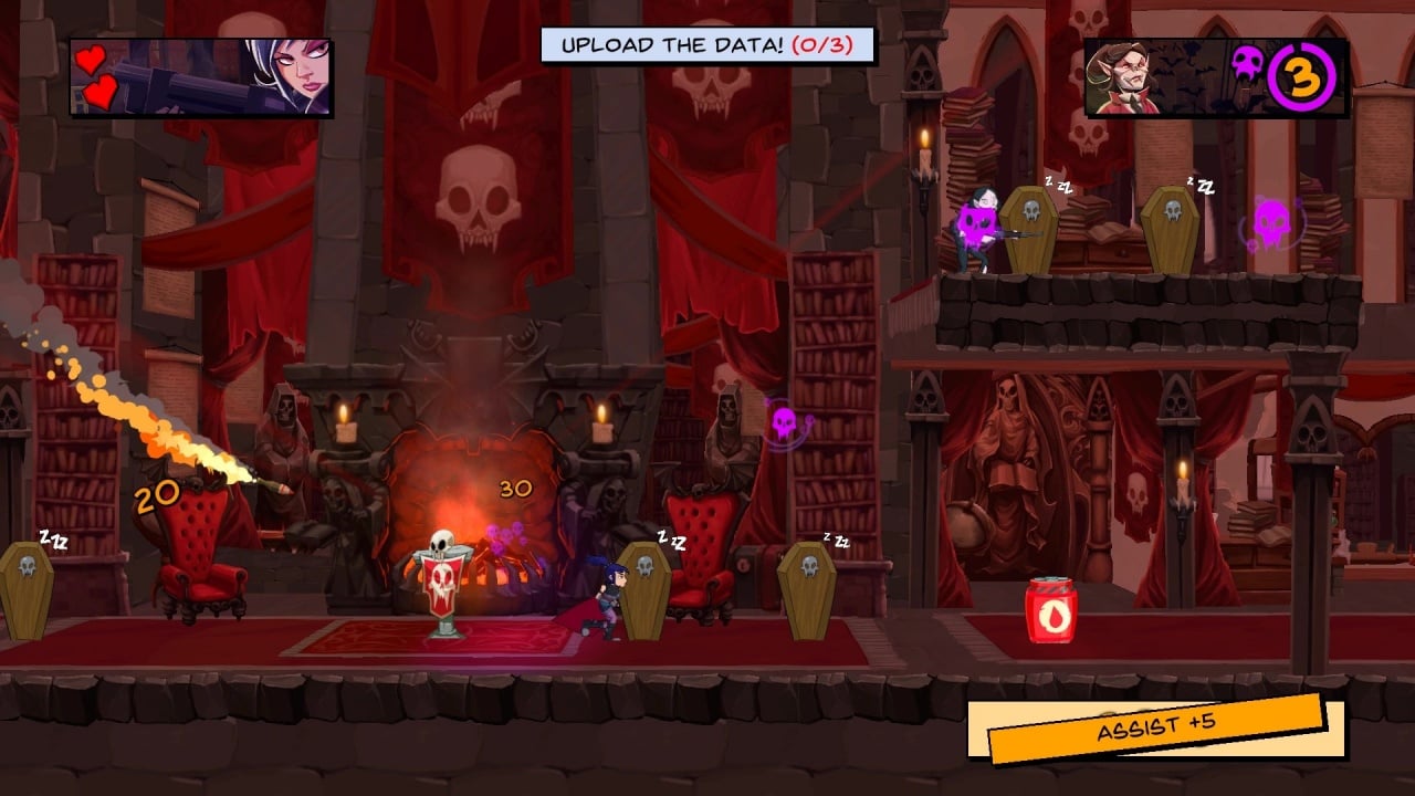 Damsel – экшен-платформер, в котором игроку предстоит много стрелять, выполнять сложные прыжки через громадные пропасти и решать пространственные головоломки для продвижения дальше по сюжетной линии. Стилистически, проект от инди-разработчиков, выполнен в виде оживших страничек из комиксов, в которых принимали участие вампиры. Главной героиней игры является девушка по имени Дамзель, работающая специальным агентом по истреблению всякого рода нечисти. В руках хрупкой, но боевитой женщины оказывается судьба всех живых существ, атакованных кровопийцами, желающими захватить власть для установки собственных порядков.