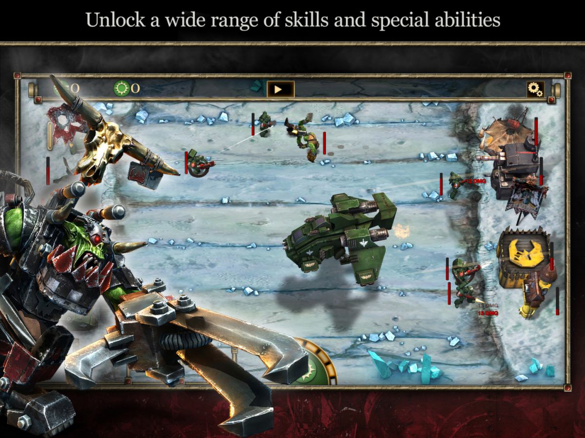 У каждой из фракций есть два ресурса: искупление и разрушение. Они позволяют нанимать космодесантников, опустошителей, строить дредноуты или Крылья Воронов. Также ресурсы нужны, чтобы использовать спецспособности. Орки могут использовать уникальную ресурс под названием варп. Он дает возможность построить особую башню Weirdboy Tower.