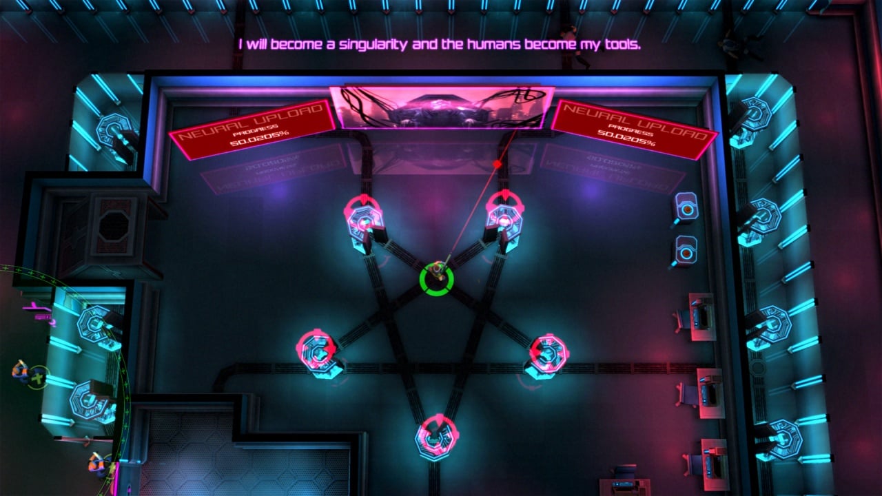 Neon Chrome был создан разработчиками Crimsonland. От культового арена-шутера наследнику достался движок и механика стрельбы. На смену пришельцам и зомби пришли корпоративные охранники и роботы. Антураж здесь киберпансковский. События разворачиваются в недалеком будущем, где некий Смотритель поработил людей внутри гигантского небоскреба. Ему противостоит девушка-хакер. Перед началом каждого забега она подключает свое сознание к хранящимся в капсулах солдатам. Все перестрелки происходят внутри огромного здания.