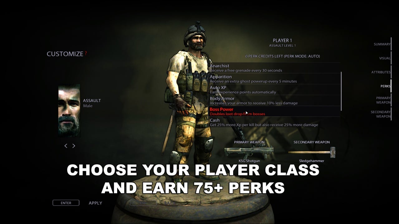 VERSUS SQUAD представляет собой зомби-шутер с видом сверху. Все бои в нем проходят на аренах, где со всех сторон лезут мертвяки. Присутствует возможность играть одному или вчетвером по сети (или с одного компьютера). В игре есть 5 классов: штурмовик, разведчик, медик и другие. Они различаются пассивными умениями и характеристиками (выносливость, сила, ловкость, точность, скорость). Можно распределять очки между этими параметрами.
