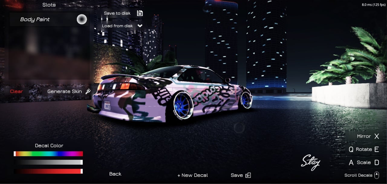 Тюнинг представлен более 100 видами цветов, включая различные оттенки, типа металлического или жемчужного. Можно прокачивать не только внешний вид машины, но и ее внутренности. Замените двигатель, детали кузова, поставьте эксклюзивные диски, задайте размер колес и т.д. Доступен широкий выбор выхлопных труб, спойлеров и много других деталей.