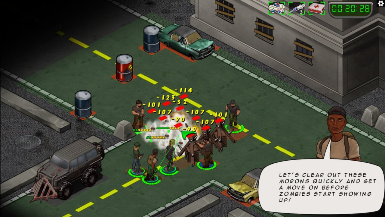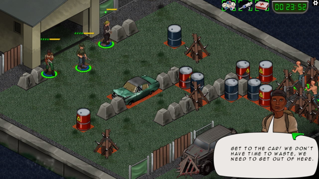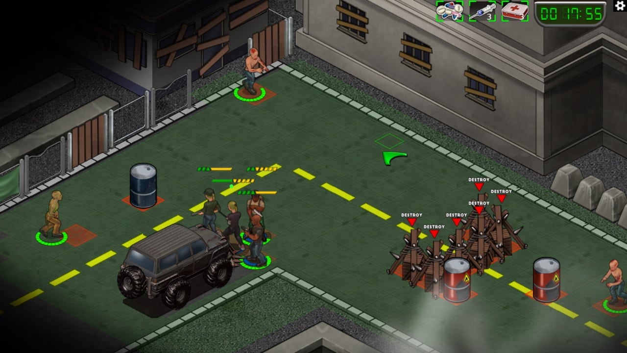 Коллективу необходимо постоянно держать уровень своих запасов в достатке, на протяжении всего путешествия к северо-восточной границе города, где можно покинуть территорию поселения и постараться вырваться из лап ходячих мертвецов. Людям необходимы не только продукты питания и вода, но и газ, медицинские препараты и оружие, которое позволяет устранять угрозу смерти от зубов зомби, легко прокусывающих кожу и мышцы.