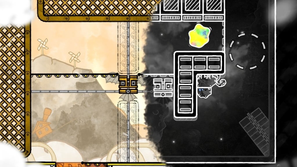 Перемещайтесь по двум различным вселенным, однако в процессе прохождения сможете посетить два скрытых. Каждый мир представлен уникальным стилем и особенностями. Чтобы переместиться мирами, используйте специальную кисть. Вам предстоит использовать особенности каждой вселенной в своих целях, чтобы решить изобретательные головоломки. При этом необходимо применить свой художественный потенциал, чтобы найти оригинальное и нетривиальное решение к пазлу.