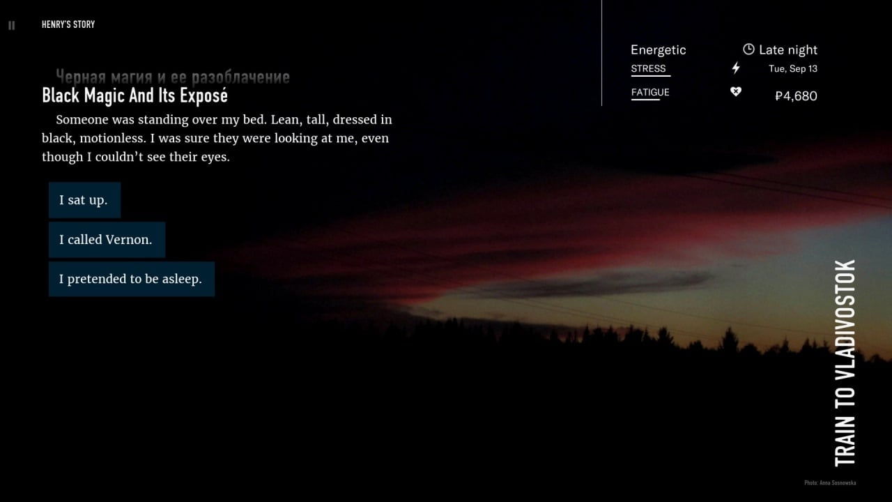 Заводите знакомства или старайтесь избегать каких-либо контактов. Ваше взаимодействие с людьми формирует характер и окружающий мир вокруг героев. Игровой процесс дает возможность изучить особенности Сибири и проникнуться ее атмосферой. Пройдите сквозь самые необычные ситуации, которые никогда не случатся наяву. Wanderlust: Transsiberian разработана при участии создателей Ведьмак.